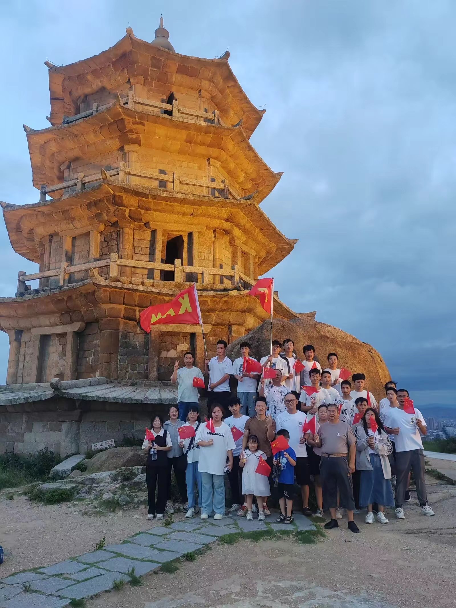 盛世华诞,举国同庆!为庆祝中华人民共和国成立75周年,同时增强公司青年职工队伍的凝聚力、向心力以及团队协作能力,展现青年职工团结向上、敢于拼搏的精神风貌,10月1日上午5时,公司组织成品库员工赴宝盖山开展国庆团建活动。